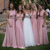 Sexy Pink V-Neck Sleeveless A-Line Long Bridesmaid Dresses Online , WGM408