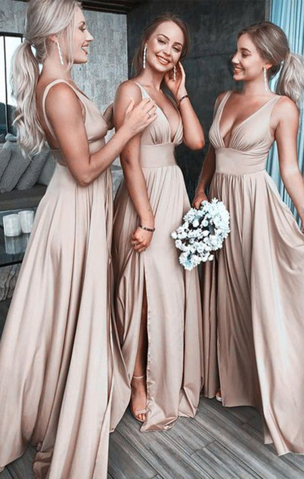 Elegant Champagne Spaghetti Strap Sleeveless A-Line Long Bridesmaid Dresses Online, WGM421