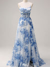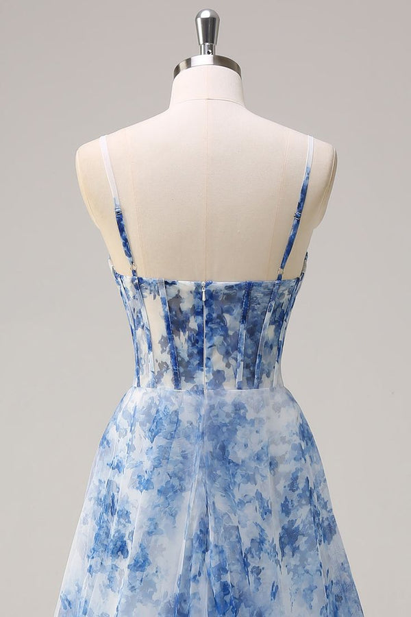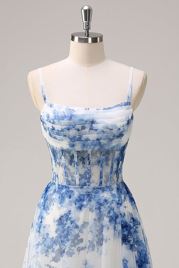 Elegant Blue Spaghetti Strap Mermaid Side Slit Long Prom Dress Ideas, Evening Party Dresses , WGP1594