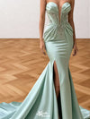 Elegant Green Sweetheart Sleeveless Mermaid Side Slit Long Prom Dress