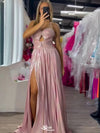 Elegant Pink Spaghetti Strap A-Line Side Slit Long Prom Dress Ideas, Evening Party Dresses,WGP1646