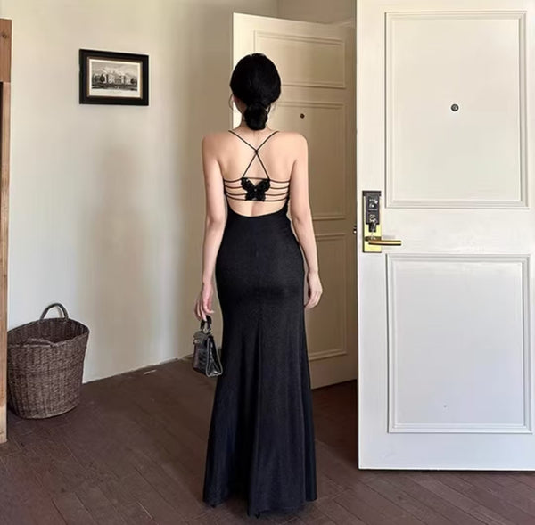 Sexy Black Spaghetti Strap Mermaid Side Slit Lace Long Prom Dress Ideas, Evening Party Dresses , WGP1577