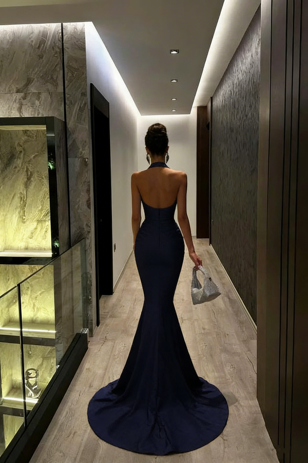 Sexy Navy Blue V-Neck Mermaid Long Prom Dress Ideas, Evening Party Dresses, WGP2014