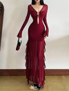 Sexy Red V-Neck Long Sleeve Mermaid Long Prom Dress Ideas, Evening Party Dresses,WGP1667