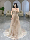 Shiny Gold Spaghetti Strap A-Line Long Prom Dress Ideas, Evening Party Dresses,WGP1602