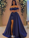 Elegant Navy Blue Off-Shoulder A-Line Long Prom Dress Ideas, Evening Party Dresses,WGP1975