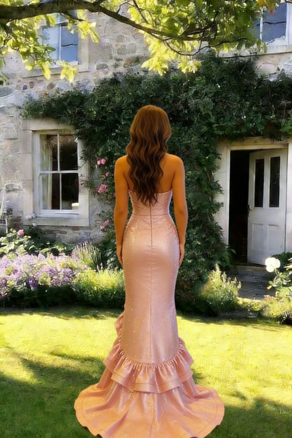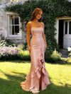 Unique Blush Pink Glitter Gala Dress Cascading Ruffles High Slit Prom Gown,WGP2116