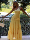 Unique One Shoulder Yellow Tiered Prom Dress Ruffled Waist Summer Style Chiffon Maxi,WGP2108