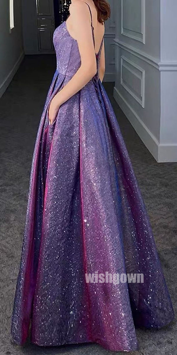 Beautiful Sky Spaghetti Strap Long Prom Dresses PG1186