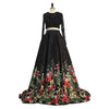 Black Long Sleeves Two Pieces Elegant Affordable Long Prom Dresses, WG1025