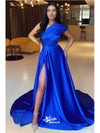 Blue A-line One Shoulder High Slit Maxi Long Evening Prom Dresses,WGP267