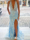 Sexy V-neck Halter Mermaid Long Prom Dress Ideas, Evening Party Dresses,WGP1133