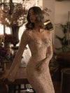 Shiny Gold Long Sleeve Mermaid Lace Applique Long Prom Dress Ideas, Evening Party Dresses,WGP1686