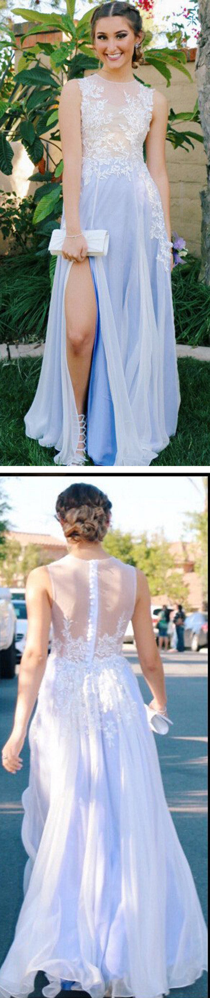 Side Slit See-through Scoop Custom A-line Evening Long Prom Dress, PD0132