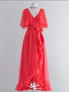 Stylish Watermelon A-line Chiffon V Neck Long Prom Dresses ,WGP1086