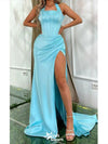 Unique Blue Mermaid Halter Square Side Slit Cheap Maxi Long Party Prom Gowns,Evening Dresses,WGP460