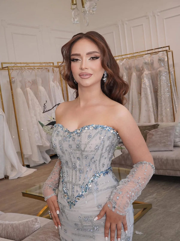 Unique Blue Sequin Sweetheart Sleeveless Mermaid Long Prom Dress Ideas, Evening Party Dresse,WGP1692