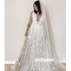 Floral Prints Deep V-neck Wedding Dresses Tulle Bridal Dresses WDH034