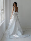 Simple Back Bow Gown With Scoop Neckline Satin A-line Wedding Dresses, WGB014