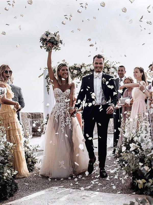 Sweetheart Tulle Strapless Appliques A-line Sweep Train Wedding Brides Dresses, WGB023