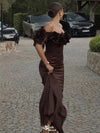 Elegant Brown Off-Shoulder Mermaid Floral Long Prom Dress Ideas, Evening Party Dresses,WGP1743