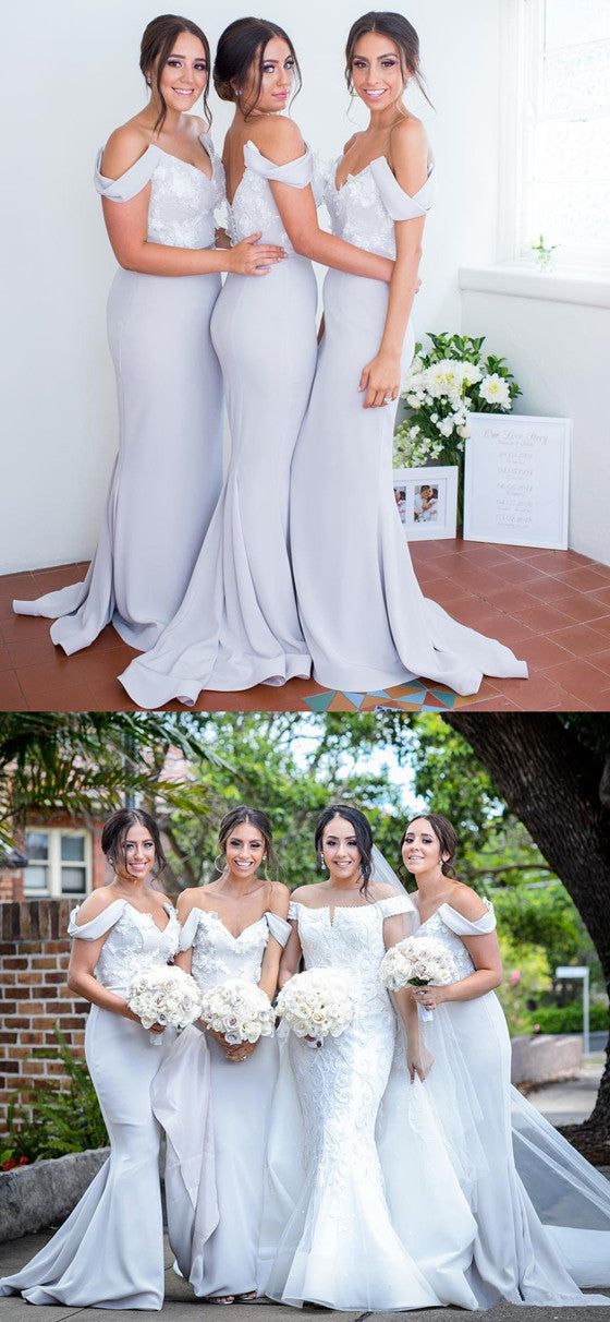 Elegant Mermaid Off Shoulder V Neck Sleeveless Applique Popular Cheap Maxi Long Wedding Guest Bridesmaid Dresses,WGM316