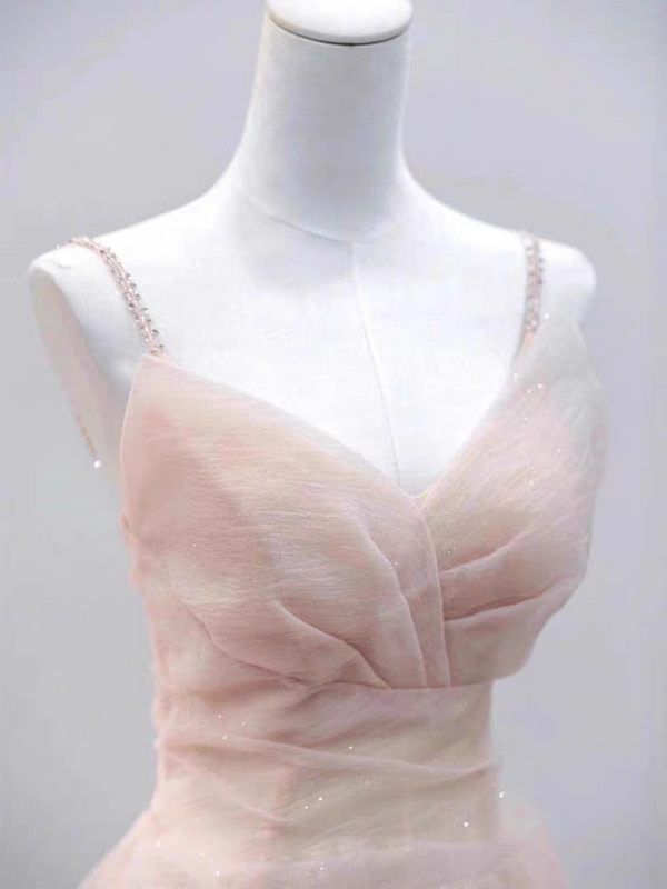 Elegant Pink Spaghetti Strap A-Line Long Prom Dress Ideas, Evening Party Dresses,WGP1798