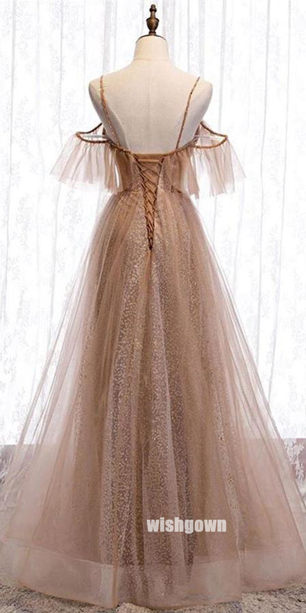 Elegant Spaghetti Strap Tulle Long Prom Dresses PG1218