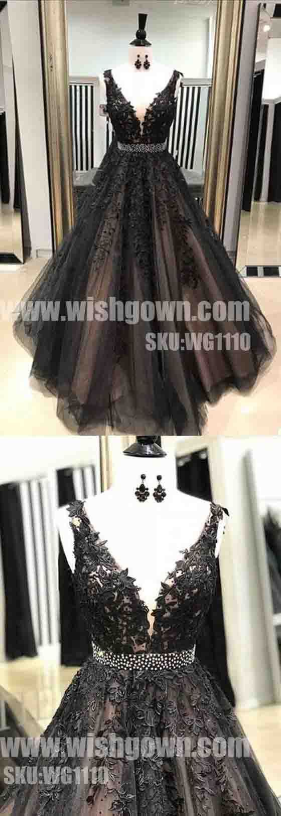 Most Popular Black Applique Formal Long Evening Prom Dresses, WG1110