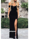 Sexy Black Off Shoulder Side Split Long Prom Dresses PG1219