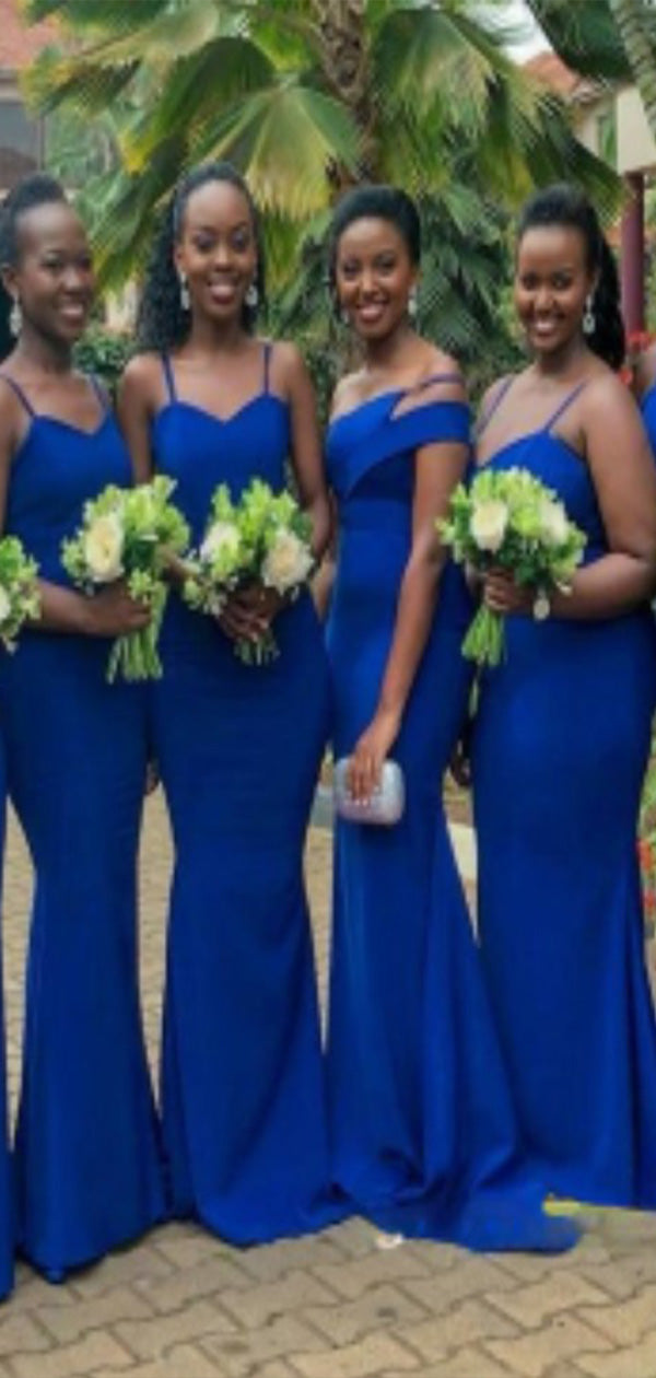 Mismatched Blue Mermaid Popular Cheap Maxi Long Wedding Guest Bridesmaid Dresses,WGM250