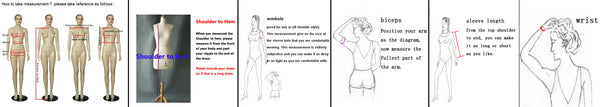 If dress is custom made, we need the measurements as following, please leave a note after checking out.