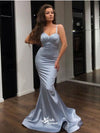 Sexy Blue Mermaid Spaghetti Straps Maxi Long Evening Prom Dresses,WGP266