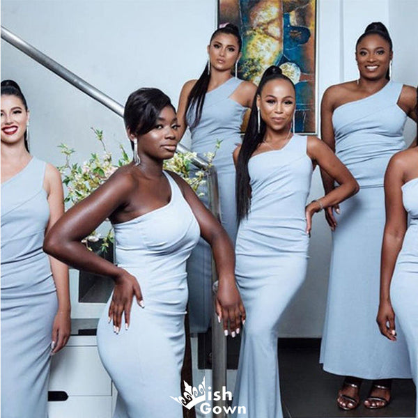 Elegant Baby Blue One Shoulder Mermaid Sleeveless Wedding Guest Bridesmaid Dresses,WGM389