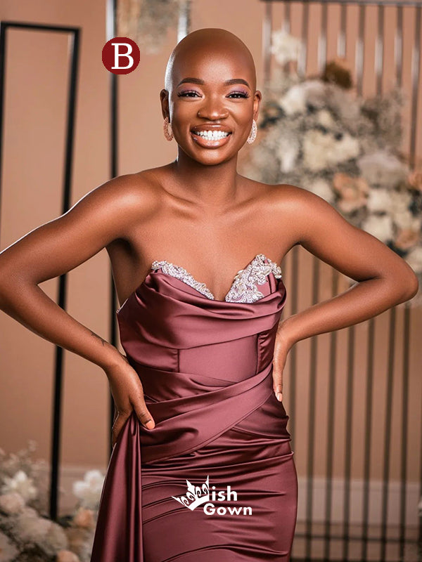 Mismatched Off Shoulder Pleats Squins Sweetheart Mermaid Soft Satin Long Bridesmaid Dresses, WGM117