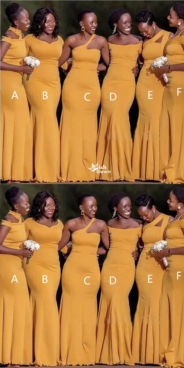 Mismatched Simple Yellow Mermaid Long Bridesmaid Dresses Online, WGM152