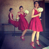 Red Short Simple V Neck Cheap Wedding Party Bridesmaids Dresses, WG361
