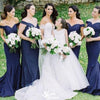 Elegant Blue Off Shoulder Mermaid Sleeveless Wedding Guest Bridesmaid Dresses,WGM387