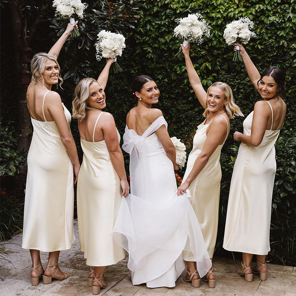 Simple White Spaghetti Strap Square Mermaid Sleeveless Wedding Guest Bridesmaid Dresses,WGM397