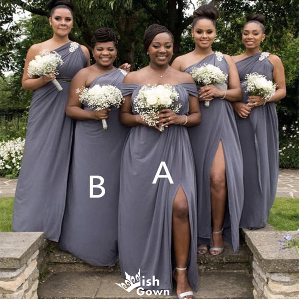 Simple One Shoulder Mermaid Side Slit Sleeveless Wedding Guest Bridesmaid Dresses,WGM386