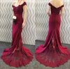 Burgundy Charming Lace Off Shoulder Popular Long Bridesmaid Dresses, W