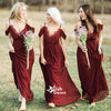 Burgundy Off Shoulder Spaghetti Strap Chiffon Lace V-neck Long Pretty