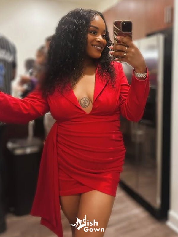 Elegant Long Sleeves V-neck Sheath Short Mini Homecoming Dress,EPT487
