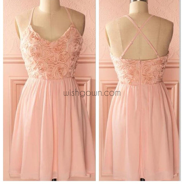 Peach spaghetti strap simple mini freshman homecoming prom bridesmaid dress