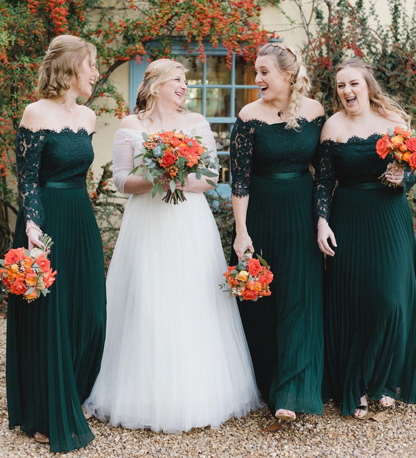 Long Sleeves Off the Shoulder Lace Long Bridesmaid Dresses, WG458