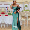 Dark Green Off Shoulder Pleats Appliques Mermaid Wedding Guest Bridesmaid Dresses, WGM085