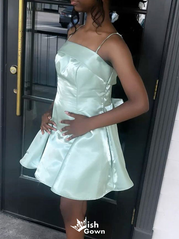 Casual Spaghetti Strap A-line Short Mini Homecoming Dress,EPT539