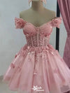 Elegant Floral Pink Off-Shoulder Short Sleeveless Homecoming Dresses For Birthday Party, EPT695