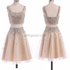 Popular champagne two pieces sparkly unique homecoming prom gown dress