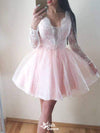 Sexy V-neck Long Sleeves A-line Short Mini Homecoming Dress,EPT537